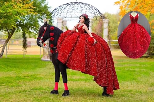 More information about Zhangyo Glitter Sequin Quinceanera Dresses with Train Gorgeous V Neck Sweet 15 16 Dresses Princess Vestidos De 15 Años