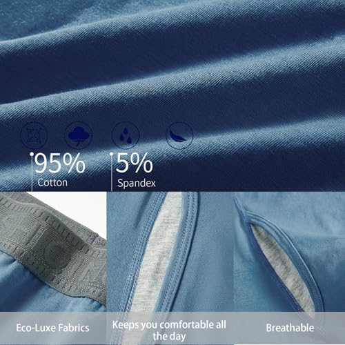• Premium Cotton-Spandex Comfort​​ "95% premium cotton + 5% spandex blend delivers exceptional softness with optimal stretch—ideal for ​​men’s briefs​​, ​​boxer briefs for men​​, and ​​athletic underwear men​​ need. The breathable, flexible fabric keeps you comfortable all day."