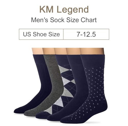 KM Legend Men's Dress Socks Classic Fine Lightweight for Formal and Casual Wear (5 Pair Pack) 7
