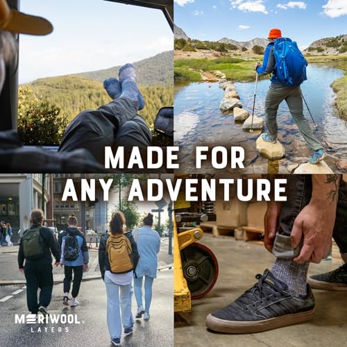 • VERSATILE SUMMER SOCKS: Tailored for the versatile adventurer, MERIWOOL's merino wool socks are the perfect companion for warm to cool hikes and beyond. Their optimal thickness makes them ideal for any hiking boot or shoe, without the added bulk, transforming them into your go-to everyday sock. Step into any adventure with confidence, knowing your feet are wrapped in the unbeatable comfort of MERIWOOL.