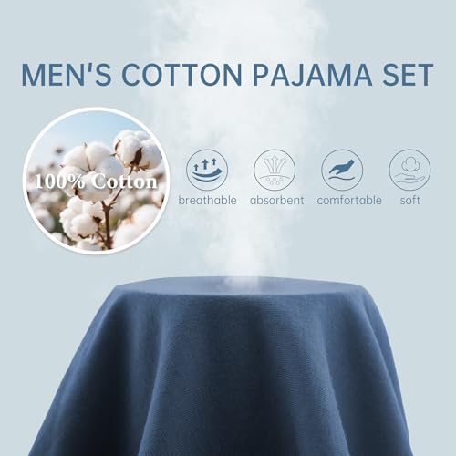 • Pure Cotton Fabric: The mens pajama set is made from 100% cotton, soft, lightweight, breathable ,which brings you ultra comfort sleeping time and feels relaxing for home living