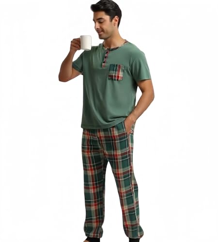 • Pajama Pants Set: The front chest pocket adopts fashionable and classic contrast color design. plaid pants with an elastic waistband and drawstring, provides a comfortable and adjustable fit that moves with you as you sleep or lounge around