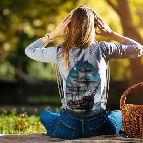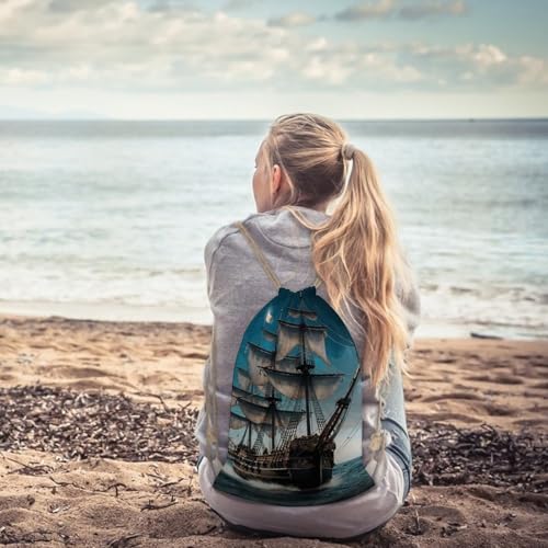 HOT ! Pirate Ship Drawstring Backpack - Canvas Sports Gym Sackpack, Lightweight String Bag for Beach & Travel