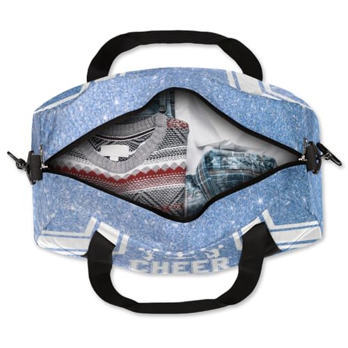 HOT ! Personalized Cheerleader Bag for Girls Kids, Custom Dance Bag Overnight Small Duffel Bag Carry On Weekend Sports Travel Bag for School Practice Gymnastics Ballet, Cheer Blue Glitter 3
