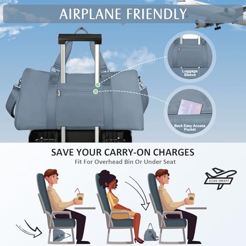 • Airplane Friendly Carry-on Bag: The large size of 57*26*28CM/22.4*10.2*11inch is the perfect carry-on bag for air travel and meets most international carry-on baggage requirements. This women's travel bag is made of sturdy waterproof material to protect your belongings. The one-piece trolley sleeve slides over the rolling luggage handle, saving effort and making it easy to move. Fits in the overhead luggage compartment or under your seat as an in-flight personal item.