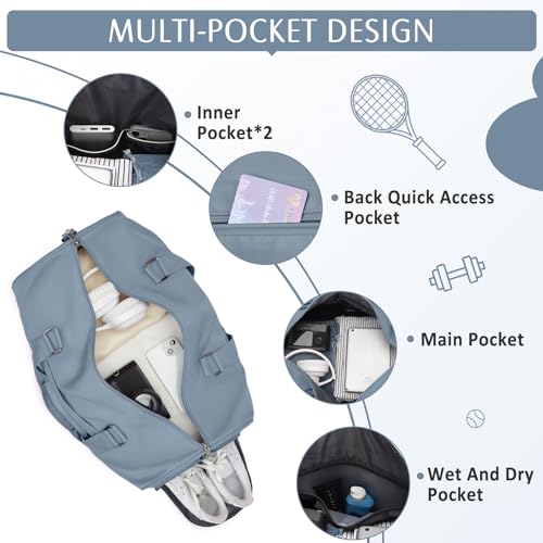 Gym Duffle With Shoe Compartment - Sports Travel Tote for Men and Women, Weekender Overnight Personal Item, Carry-on Workout Bag for Sports - Grey Blue 4