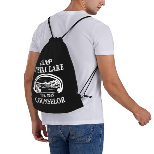 HOT ! 1980 Camp Crystal Lake Counselor Drawstring Bags, Lightweight Gym Sack with Adjustable Cord, Water-Resistant Sports Backpack for Men Women, Travel, Yoga, College (Black)