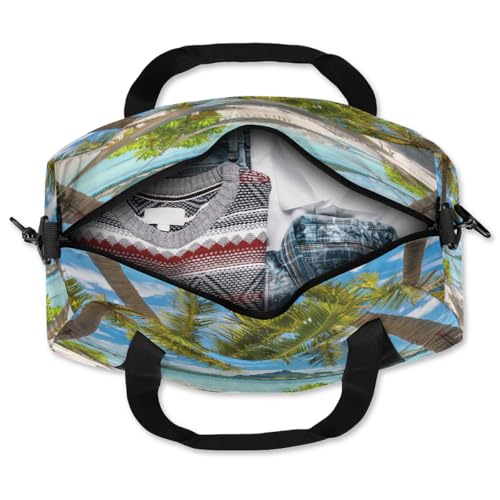 Kids Gym Bag with Adjustable Shoulder Strap, Ocean Beach Palm Trees Tropical Island Seaside Boys & Girls Travel Sport Duffle Bag School for Overnight Travel Bag 5