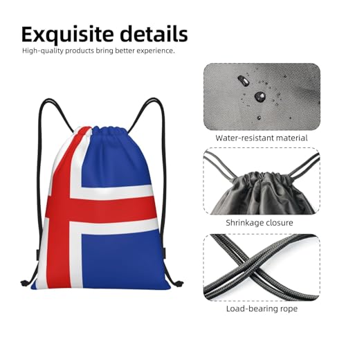 HOT ! Flag Of Iceland Print Drawstring Backpack Lightweight Sport Bag,Pull String Back Sack Suitable Gym,Travel