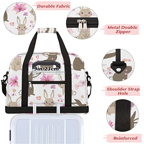Travel Duffel Bag Cute Flower Bunny Rabbit Sport Gym Bag for Woman Man,Waterproof Foldable Weekend Overnight Bag for Yoga Workout Training with Shoe Compartment 6
