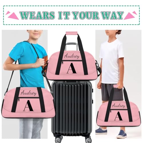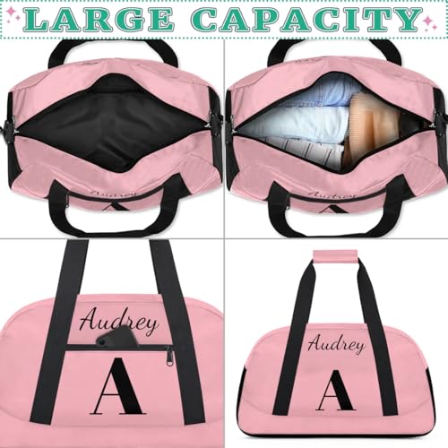Pink Custom Gym Bag for Women Men, Personalized Initial Travel Duffel Bag with Name, Small Sports Gym Bag Weekender Carry On Overnight Bags 4