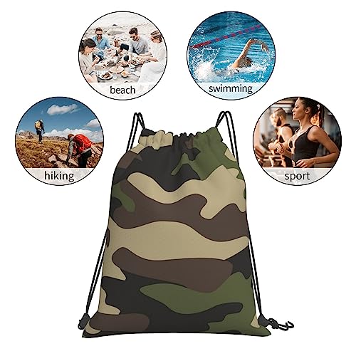 HOT ! Green Brown Camo Drawstring Backpack Sports Gym Sack Sackpack String Bag Cinch Bag For Sport Yoga Travel Shopping Women Men