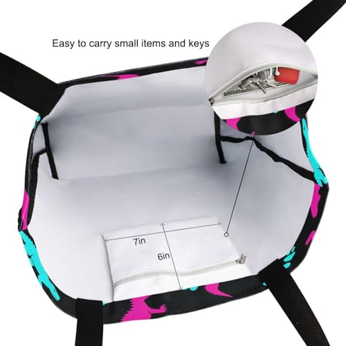 HOT ! Dinosaur Silhouettes Black Extra Large Canvas Gym Shoulder Tote,Durable Reusable Daily Top Handle Bag for Mens Womens Yoga Weekender Picnic Beach Travel Market Shopping