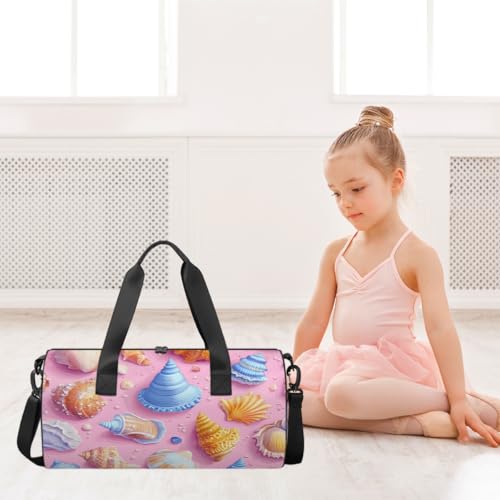 Colorful Sea Shells Round Barrel Sports Fitness Bag, Travel Luggage Bag, Reusable Handbag, Suitable For Men and Women 3