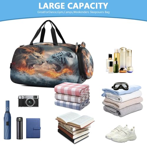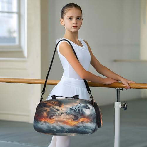 Gym Travel Duffle Bag for Boys Girls Lion and Tiger Sports Dance Bag with Shoe Compartment & Wet Pocket Football Kids Travel Bag Teens Sleepover Carry 5