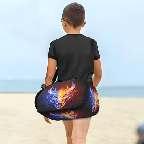 Gym Travel Duffle Bag for Boys Girls Fire Water Dragon Sports Dance Bag with Shoe Compartment & Wet Pocket Football Kids Travel Bag Teens Sleepover Carry 3