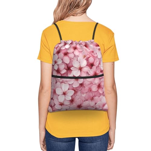 HOT ! Cherry Blossom Petals Printing Drawstring Zipper Backpack For Hiking Camping Yoga - Convenient Daily Carry