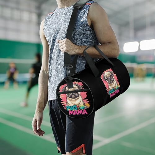 Pug Mama Sports Gym Bag Travel Duffel Workout Bag with Adjustable Strap 5