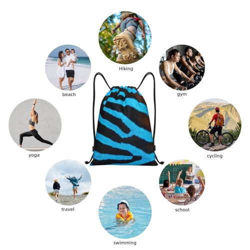 Navy Zebra Stripes Drawstring Bag Sport Gym Sack Drawstring Bag For Sport Camp Travel Dance 6