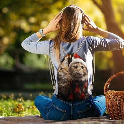 Christmas Cat Drawstring Backpack - Canvas Sports Gym Sackpack, Lightweight String Bag for Beach & Travel 3