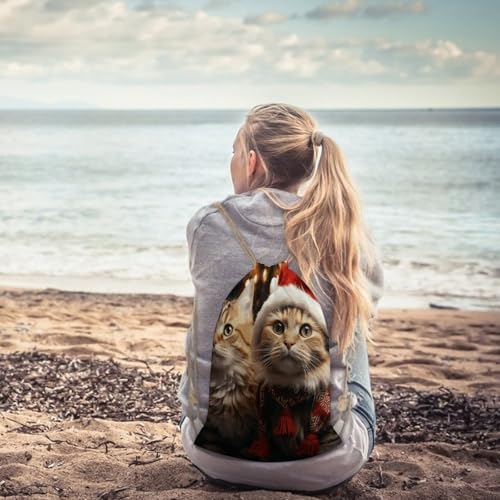 HOT ! Christmas Cat Drawstring Backpack - Canvas Sports Gym Sackpack, Lightweight String Bag for Beach & Travel