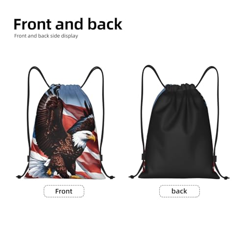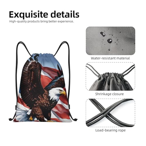 • Robust and Light: Fashioned from 210D encrypted polyester fiber, the Eagle with USA Flag print Pull String Sport Bag for Sports endures rough usage, combining strength with a lightweight design for convenience.​​