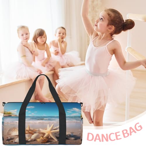 HOT ! Beach Starfish Shells In Summer Sports Duffle Bag for Women Men Waterproof Overnight Weekender Bag with Adjustable Strap Travel Tote Bags for Beach Yoga Work Dance Swim