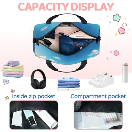 • SPACIOUS SPACE: This sports gym bag measures 17.91x8.07x9.65 inches, with large capacity, has an oversized main pocket and 2 pockets on the inside to store books, clothes, towels, shoes, personal items and toiletries. There is a divider and zip pocket on each side of the travel bag, suitable for cards, passports, phones, snacks and other small items.