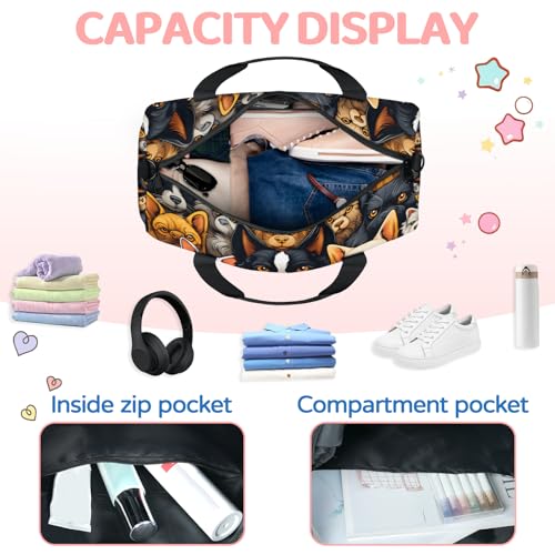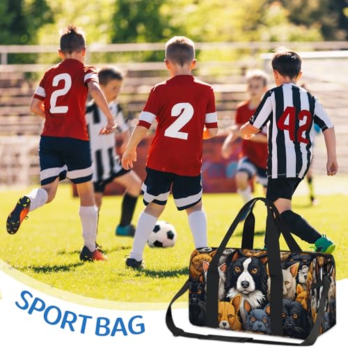 Cartoon Animal Dog Pattern Sports Duffle Bag for Women Men Waterproof Overnight Weekender Bag with Adjustable Strap Travel Tote Bags for Beach Yoga Work Dance Swim 6