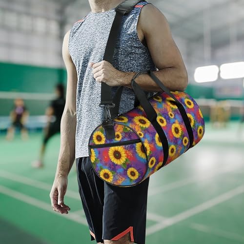 HOT ! Travel Duffle Gym Bag for Men, Portable Outdoor Overnight Weekender Bag Sunflower Painting Sport Handbag with Shoulder Strap