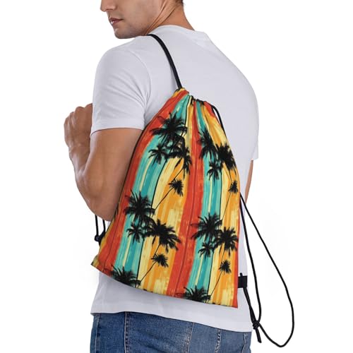 HOT ! Drawstring Backpack - Colorful Tropical Plants Print Sports Gym Sackpack String Bag For Women Men, Lightweight Draw String Back Bag For Workout Travel