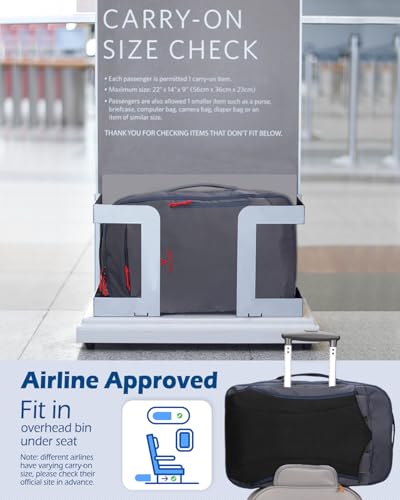 • 【Compressible Carry On】Made of water repellent 420D nylon and 210D polyester lining, carry on backpack expands from 30L to 40L, fitting most of IATA carry on sizes and overhead compartments. Approx. Dimensions: 20.47 x 13.44 x 8.66 inches (52 x 34 x 22 cm) when expanded, and 20.47 x 13.44 x 6.69 inches (52 x 34 x 17 cm) when compressed. Approx. Weight: 2.79 lbs/ 1.27 kg