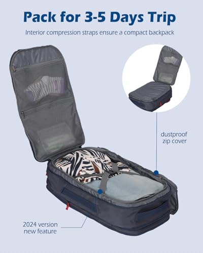 Hynes Eagle TSA Friendly Travel Backpack for Men Women Carry on Backpack 40L Flight Approved Laptop Backpack for 17 inches Compressible Weekender Bag Overnight Backpack Dark Blue with Waist Pack Black 5