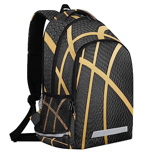 Balck Gold Sport Basketball Backpack School Bookbag Laptop Purse Casual Daypack for Teen Girls Women Boys Men College Travel 1