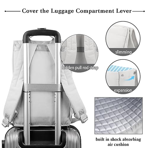 PORRASSO Laptop Backpack Women Daypack Rucksack for 14 Inch Laptop with Luggage Strap Business Waterproof Bookbag Travel Knapsack White A 7