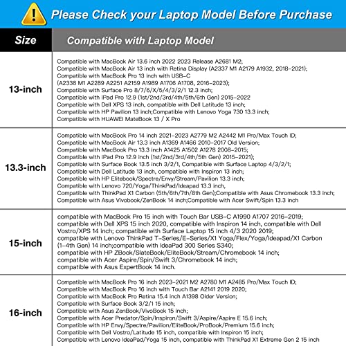 • Compatible with MacBook Pro 14 inch 2021-2023 A2779 M2 A2442 M1 Pro/Max Touch ID, compatible with MacBook Air 13 inch A1369 A1466 2010-2017, compatible with MacBook Pro 13 inch A1425 A1502 A1278 2008-2015; Compatible with Surface Book 3/2/1 13.5, compatible with Surface Laptop 4/3/2/1 13.5; Compatible with Dell Latitude 14; Compatible with HP Elitebook 13.3/Spectre X360 13.3/Envy 13/Stream 13/Stream 14/Pavilion 14; Compatible with Lenovo ThinkPad X1 Carbon; compatible with Lenovo IdeaPad 13/14.