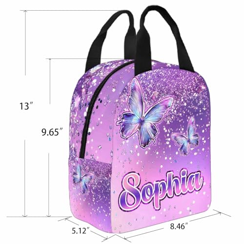 InterestPrint Customized Name Backpack School Bags from Dad, Custom Butterfly Backpack for Kids Personalized Backpacks for Girls,Lunch Bag Set 4