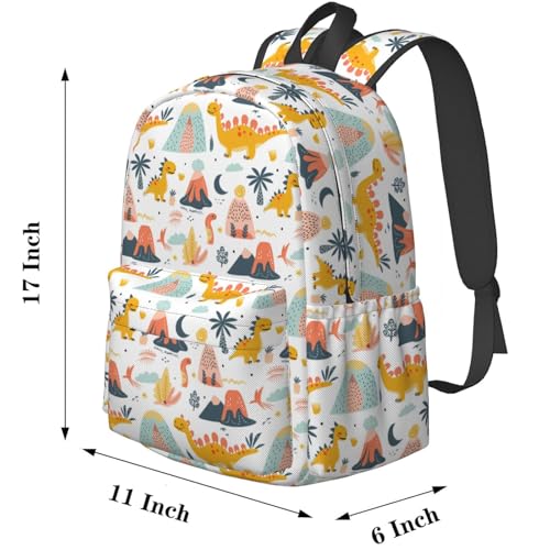 • ★ DESGIN: Delerain Vivid Dinosaur and volcano print design backpack, the back of the backpack is ergonomically designed for greater comfort, Large-capacity design, main compartment inside, 1 small zipper front pocket; 2 side pouchs. Easy access 15-inch laptop and iPad compartment separate from roomy main compartment.