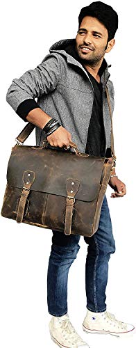 More information about 18 Inch Vintage Handmade Leather Messenger Bag for Laptop Briefcase Best Computer Satchel School Distressed Bag (16 inch, Brown)