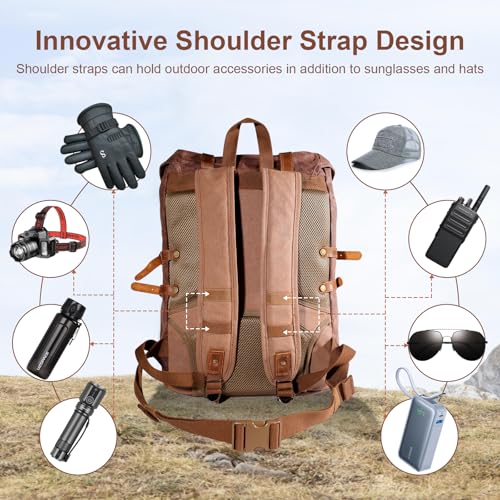Waxed Canvas Leather Hiking Travel Waterproof Backpack for College Weekend Travel Fit 15in laptops 6