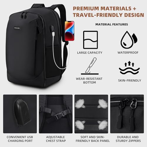 • 【Smart Expandable Capacity (55L Capacity)】This expandable backpack transforms from a compact (12.99 × 7.48 × 20.08 inches / 33 × 19 × 51 cm) carry-on vackpack (meets common airlines flight requirements) to a spacious 50L pack offering the storage equivalent of a 22" suitcase without the bulk - ideal for mountain hiking or urban traveling