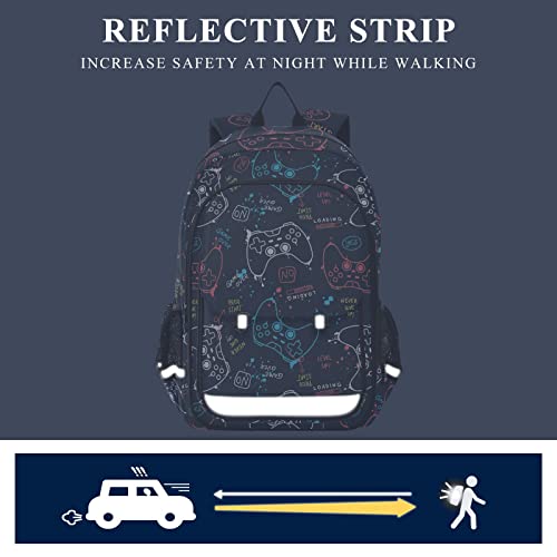 Video Game Joysticks Blue School Backpack Lightweight Laptop Backpack Student Travel Daypack with Reflective Stripes 5