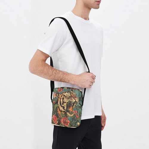 messenger bag cute Shoulder Crossover Bag crossbody purses for women Adjustable Strap for business business- Angry Tigers and Roses 1