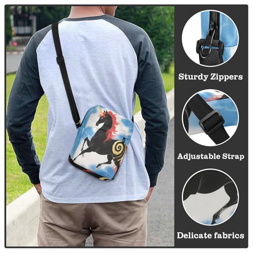 mens messenger bag crossbody bag men Shoulder Hand Bags Adjustable Strap for work work - Black Unicorns Japanese 5