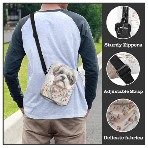 Cute Watercolor Dog Face Floral men's messenger bag mens crossbody bag Woman Shoulder Handbags Adjustable Strap for business outdoor sports 4