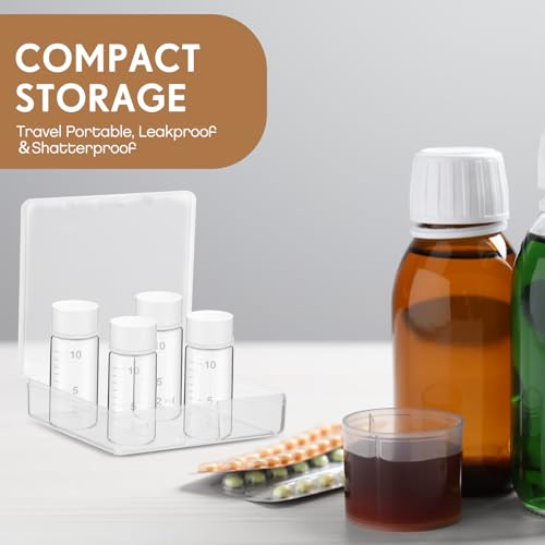 HOT ! Baderke 4 Pcs Liquid Medicine Travel Container Scale Glass Liquid Containers Small Single Dose Medicine Bottles Dispenser and Leak-proof Plug Travel Essentials Accessories(Clear,10ml)