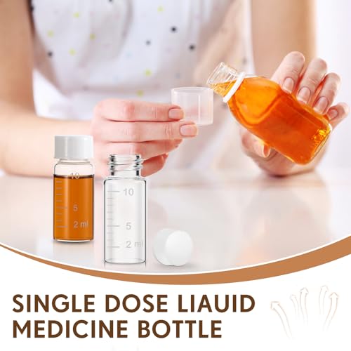 Baderke 4 Pcs Liquid Medicine Travel Container Scale Glass Liquid Containers Small Single Dose Medicine Bottles Dispenser and Leak-proof Plug Travel Essentials Accessories(Clear,10ml) 6