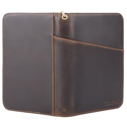 HOT ! Polare Full Grain Leather Travel Passport Holder RFID Blocking Cover Case Travel Document Organizer Wallet Holders 2 Passports With YKK Zipper (Dark Brown with AirTag Slot)