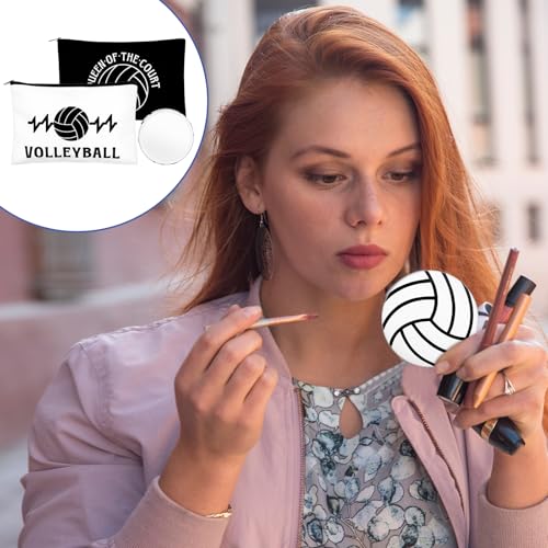 • Sweet Gift: Celebrate your team's victories and show your support with these stylish volleyball-themed canvas makeup bags/compact mirrors. The sleek design features a volleyball pattern, making them a thoughtful gift or party favor for any volleyball enthusiast. Elevate your team spirit with these trendy and practical volleyball makeup bag, compact mirrors. With 40 pieces included, you can share them with the whole team or keep extras on hand