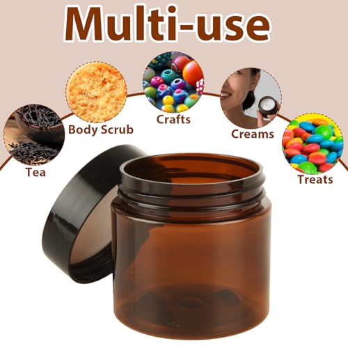 50 PCS 2 Oz Amber Jars with Lids Small Jars with Lids Amber Plastic Containers with Lids Leak Proof Amber Cosmetic Jars with Black Lids for Creams,Lotion, Powder, Ointments 4